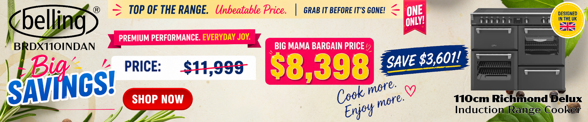 Big Mama Factory Outlet is the number one bargain on appliances outlet in the Melbourne western suburbs. Browse our extensive range of factory direct appliances and order online today. Alternatively, you can contact us to learn more and receive helpful advice by calling