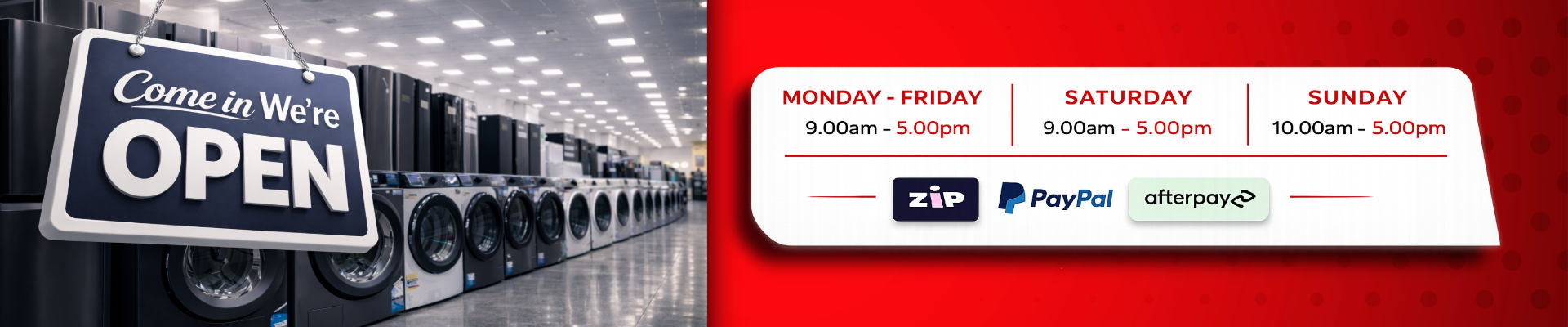 We stock a variety of brand new appliances for homes and businesses. The latter may have one or more replacement parts and is sold at a discounted price. We also offer factory seconds whitegoods that may have sustained cosmetic damage yet still work perfectly. This may include minor scratches or dents, all of which are indicated with a sticker.