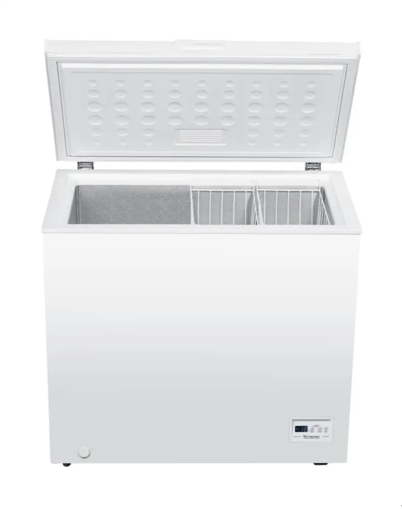 Efficient and compact, the Coldstream CFHO200N chest freezer offers 198 litres of storage capacity. Ideal for smaller homes or as a secondary freezer, it features a hinged lid, interior baskets, and an energy consumption of 229kWh/year. Dimensions: 86cm (H) x 91cm (W) x 55cm (D).