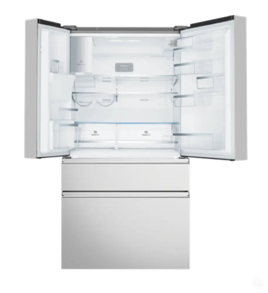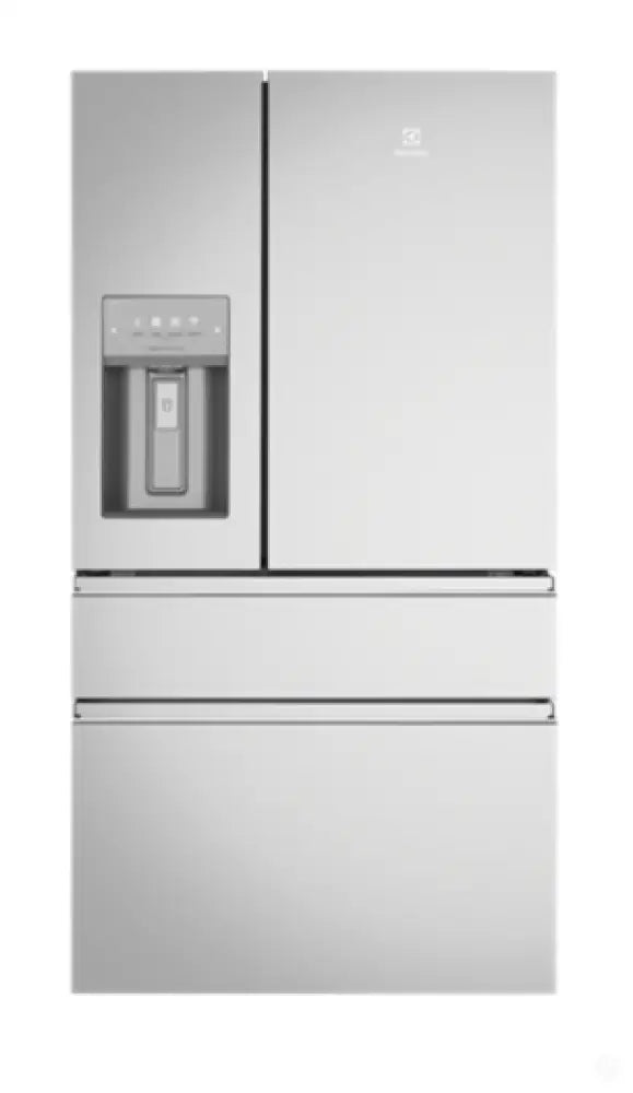 609L UltimateTaste 900 french door fridge, natural stainless with FlexFresh fully convertible entertainer's drawer, TasteLockAuto Easy-glide crispers with automatic humidity control and in door ice & water dispenser