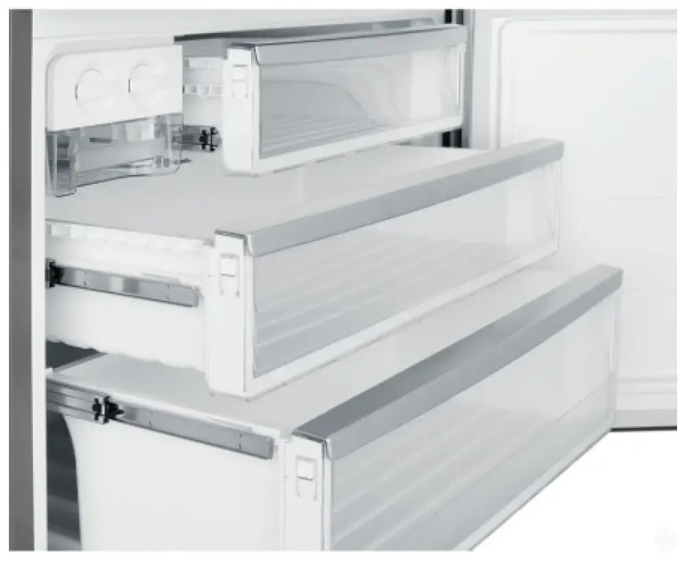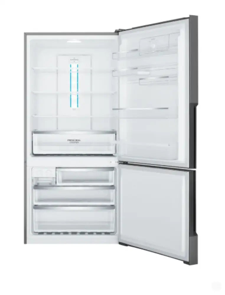 496L bottom freezer fridge, dark stainless steel, with manual humidity-controlled crisper, 5-star energy rating, SpillSafe glass shelves, telescopic runners on the freezer drawers & FlexStor adjustable storage solutions