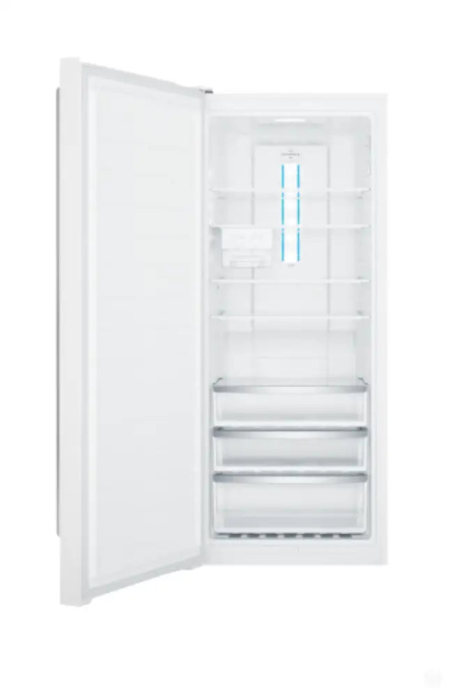388L single door freezer, white with 3 full width freezer baskets, 3.5-star energy rating, SpillSafe™ glass shelves, twist & serve icemaker & quick chill function