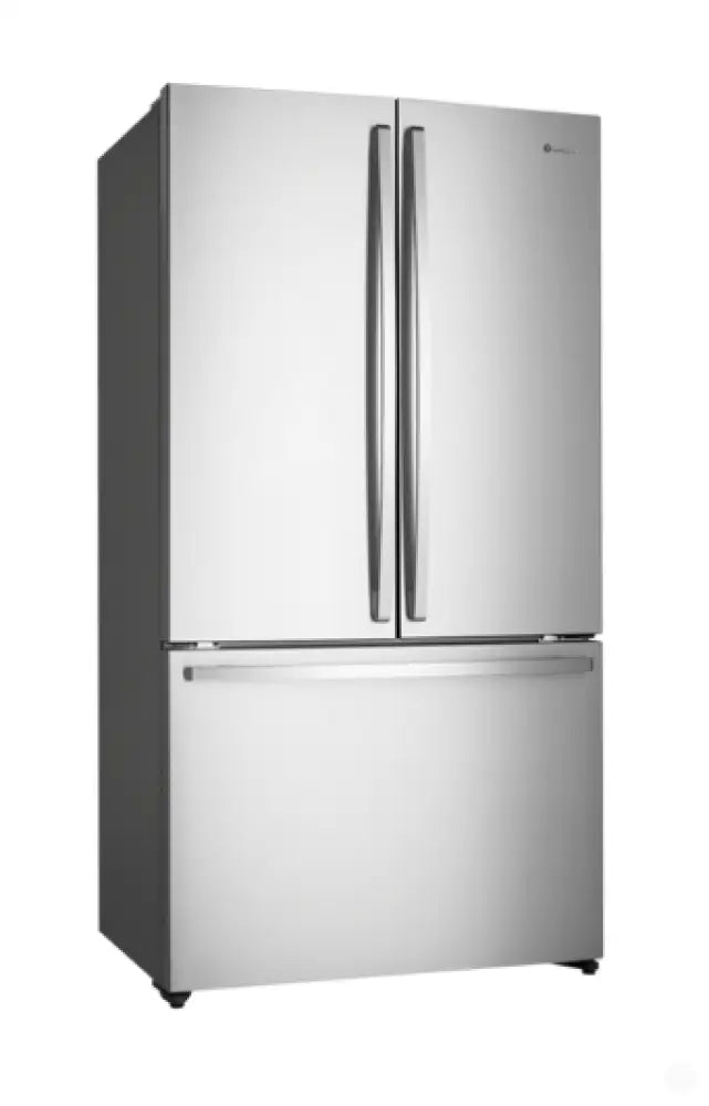 565L french door fridge, natural stainless steel with freezer drawer, designed to fit inside a 90cm kitchen cavity, dual sealed crispers with humidity control, 4-star energy rating, FlexSpace™ adjustable interiors, FamilySafe Lockable door compartment and Spillsafe™ glass shelving.