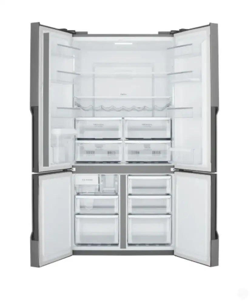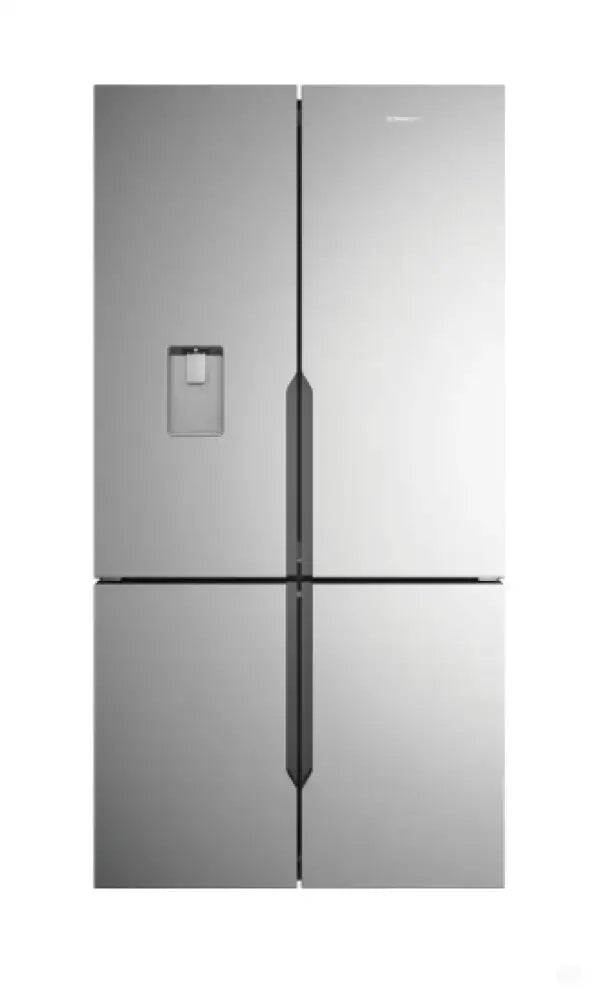 564L quad door fridge, silver with an in-door water dispenser, non-plumbed 3.5L water tank, 4 star energy, FreshSeal™ sealed crisper with manual humidity control, FreshDrawer food compartments & automatic icemaker